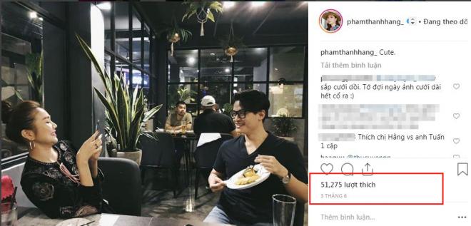 Hình ảnh Thanh Hằng và Hà Anh Tuấn luôn nhận được số lượt like cao hơn rất nhiềuvới ảnh siêu mẫu chụp 1 mình.